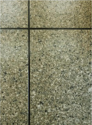 ★ 揭除膠帶,待涂層干透用細(xì)砂紙打魔中亮雨花石漆涂層并修描溝縫凹槽。