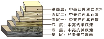 采用彩色天然碎石為主要成份,以特殊防水性硅丙乳液為粘著劑制成的,它完全克服了傳統真石漆耐污性差、附著不牢固、遇雨水沖刷易泛白、陽光照射易泛黃等缺點,經過多年的成功應用,中亮涂料公司發(fā)現真石漆表面的積灰是影響真石漆裝飾價值的關鍵所在。為此本公司運用多網狀交聯反應技術,提高涂膜成膜后的致密性,從而降低表面的積灰率,是一種不可多得的耐久型真石漆。 主要適用于: